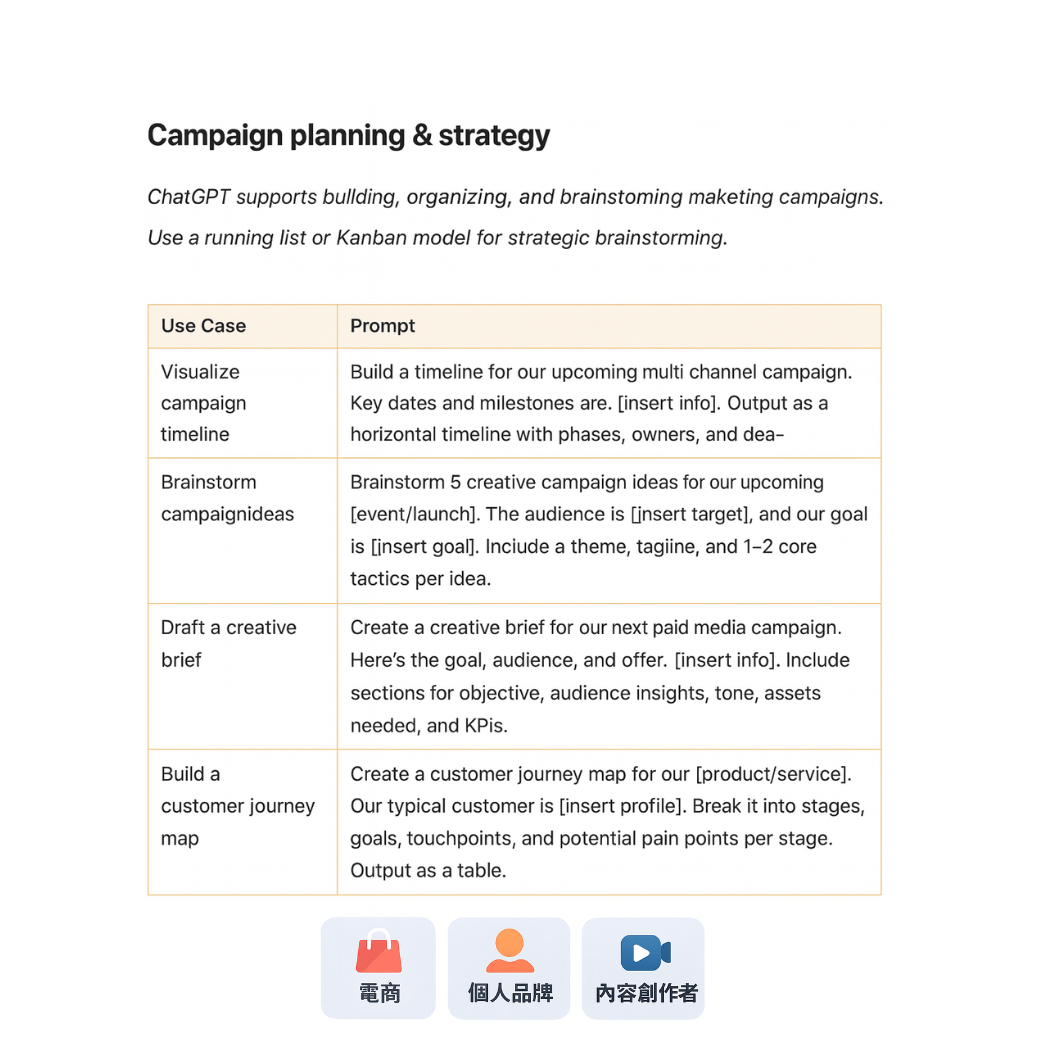 ✔ Suitable for up to 3 brands/small teams ✔ 180+ complete Prompt content ✔ Google Docs + Notion templates + PDF